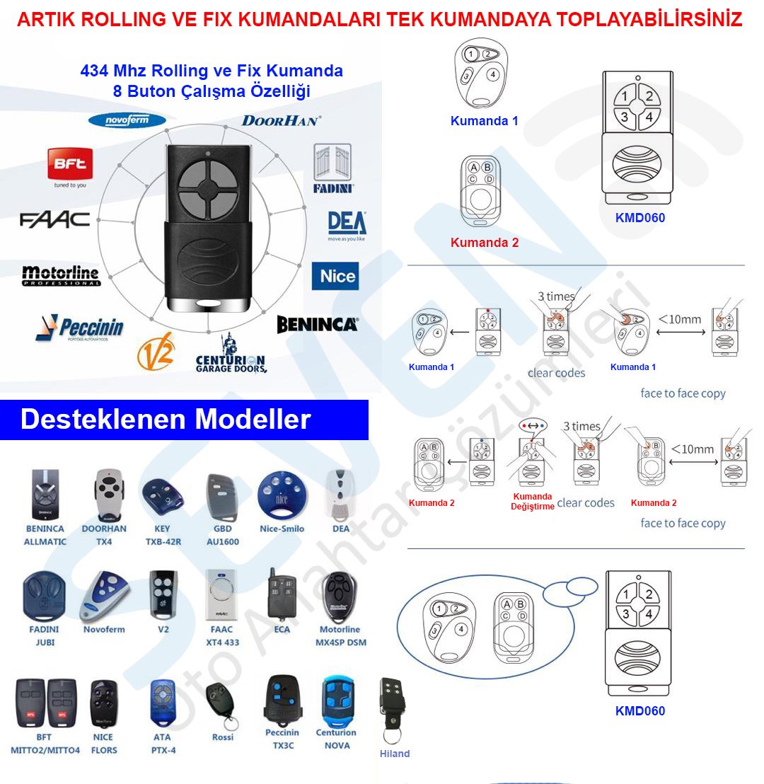 8 Buton Rolling-Fix Kodlu 434 Mhz Sallama Kumanda Face to Face